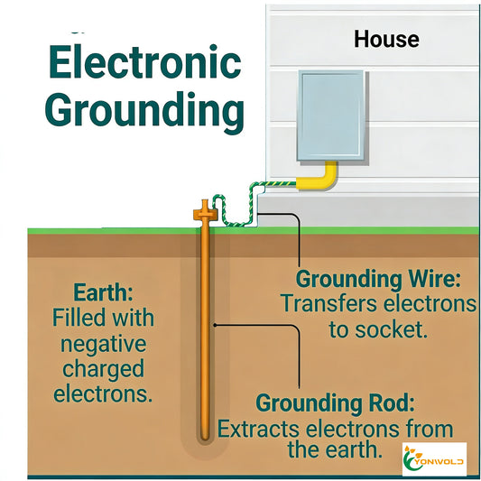 The grounding cable prevents this by allowing excess electrons to escape back into the earth, the path of least resistance.