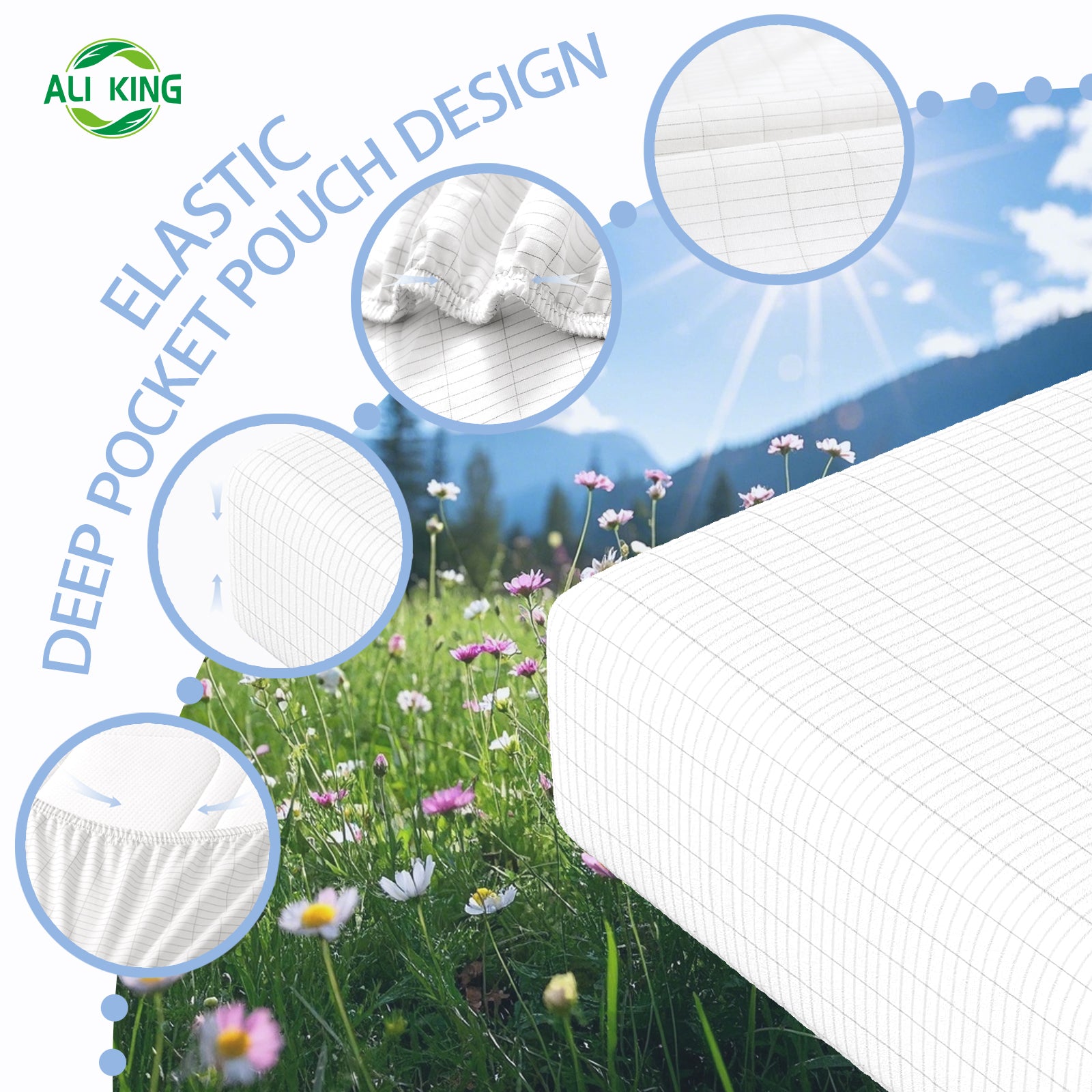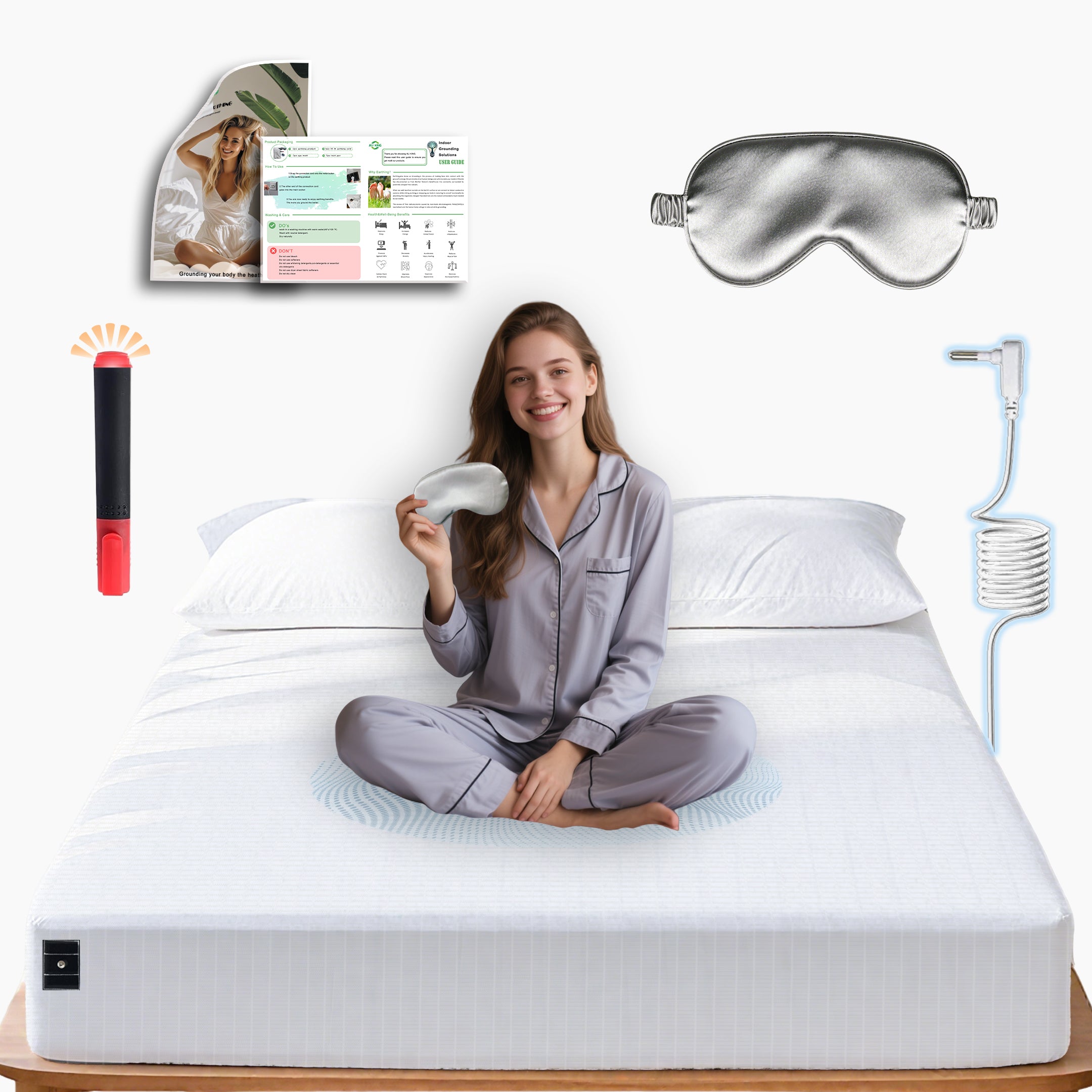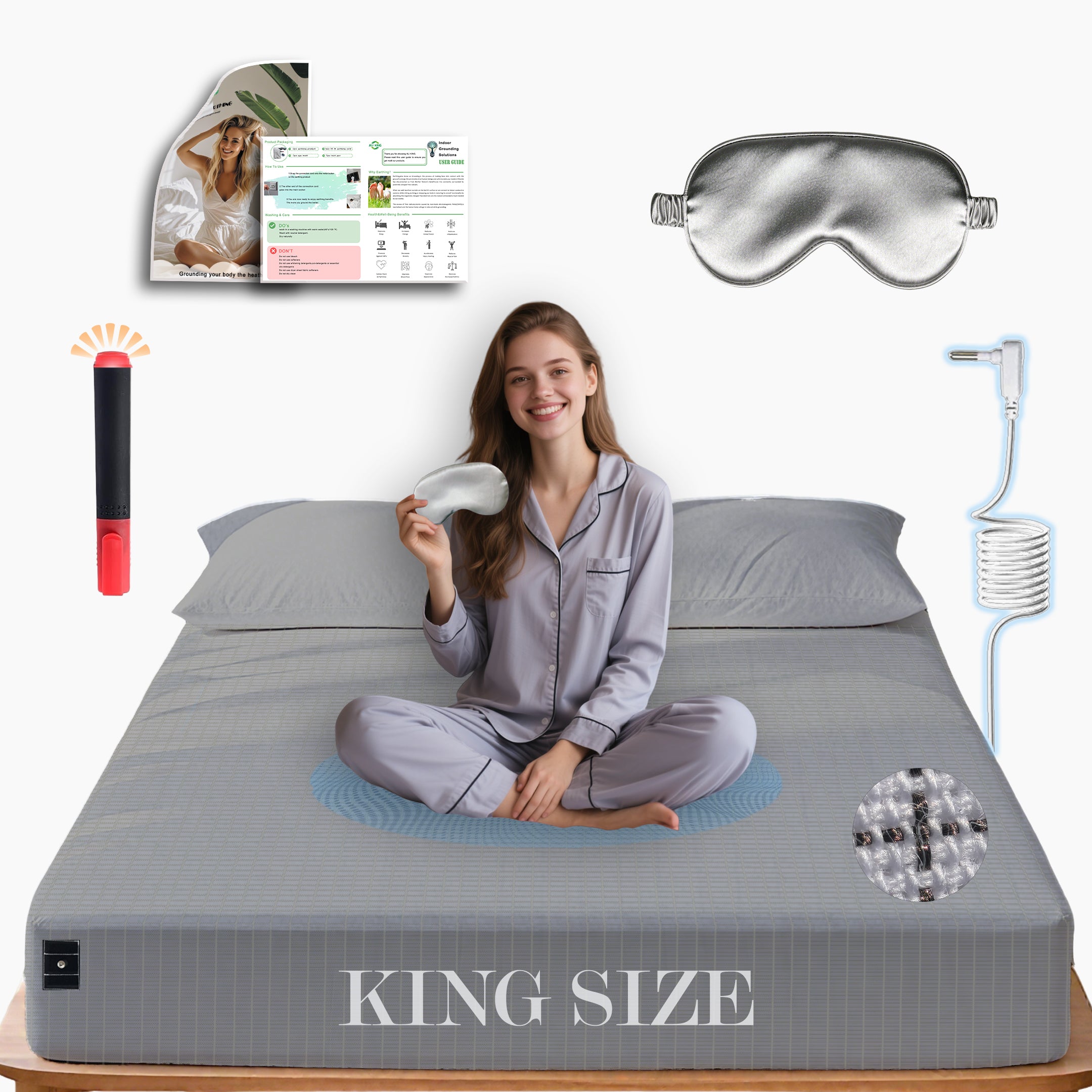 Experience the calming benefits of grounding technology integrated into premium bedding. This grounding sheet is made from soft cotton fabric combined with conductive silver fibers, allowing you to connect directly with the Earth's natural energy while you sleep. The 15-inch deep fitted sheet design securely fits most mattresses, ensuring stable contact with the ground throughout the night. Crafted for those seeking higher quality sleep and better recovery, this innovative product seamlessly blends comfort and health. Breathable and durable, it is ideal for everyday use.